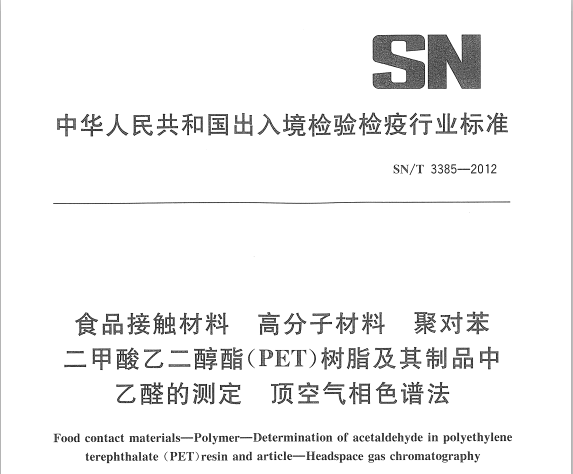 SNT 3385-2012 食品接觸材料 高分子材料 聚對苯二甲酸乙二醇酯(PET)樹脂及其制品中乙醛的測定 頂空氣相色譜法 適用范圍本標準規定了聚對苯二甲酸乙二醇酯(PET)樹脂及其制品中乙醛的頂空氣相色譜測定方法。本標準適... 更新日期:2020-05-09 下載包(1)