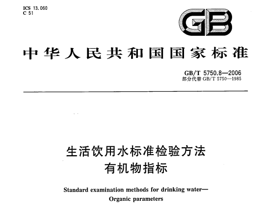 GBT 5750.8-2006 生活飲用水標準檢驗方法 有機物指標 適用范圍本標準規定了用填充柱氣相色譜法測定生活飲用水及其水源水中三氯甲烷、四氯化碳、三氯乙烯、二氯一... 更新日期:2020-05-09 下載包(1)