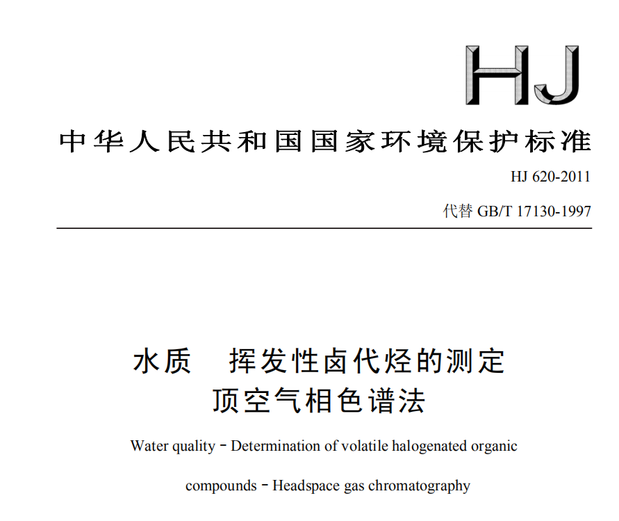 HJ 620-2011 水質(zhì) 揮發(fā)性鹵代烴的測定 頂空氣相色譜法 HJ 620-2011 水質(zhì) 揮發(fā)性鹵代烴的測定 頂空氣相色譜法本標(biāo)準(zhǔn)規(guī)定了測定水中揮發(fā)性鹵代烴的頂... 更新日期:2020-05-06 下載包(1)